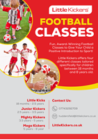 Little Kickers gives children a positive introduction to sport by teaching high quality football skills in a friendly, pressure-free environment. There are different classes tailored specifically to the needs of children between 18 months and 8 years.