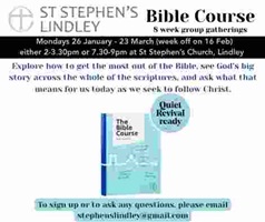 If you are interested in coming along please contact ststephenslindley@gmail.com so we can get the right number of course books (donations welcome).