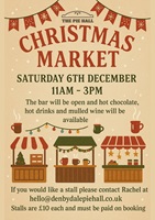 If you would like a stall, please contact Rachel at hello@denbydalepiehall.co.uk stalls are £10 each and must be paid on booking.